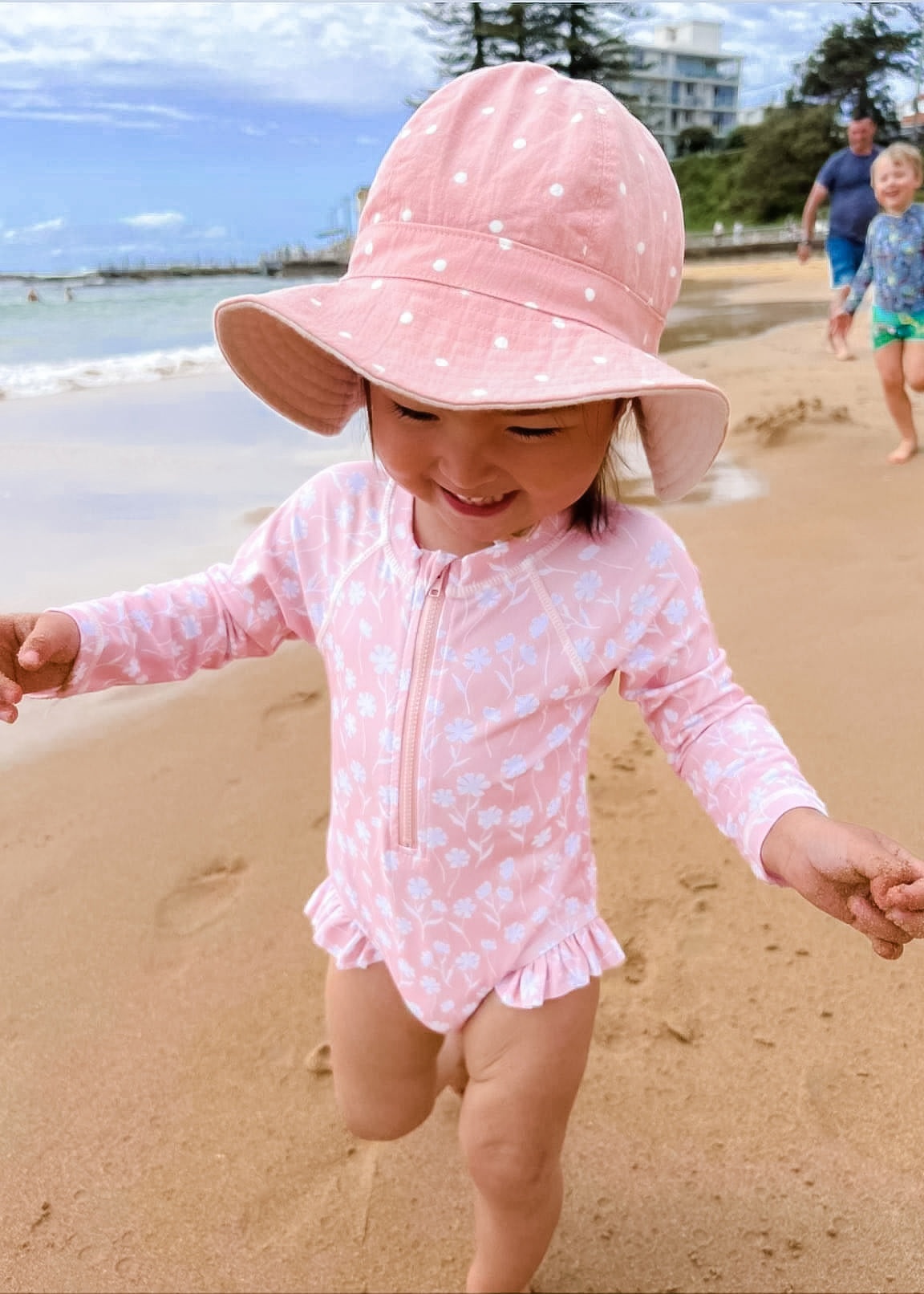 Your little bub will be the talk of the party with our Daisy Long Sleeve Swimsuit. In a sweet light pink colour palette, it has cute ruffles on the hip and a front zip for easy dressing. It also comes with a matching swim cap for keeping bubs hair in place when in the water. Our baby swimsuit is a perfect gift for birthdays and Christmas.
